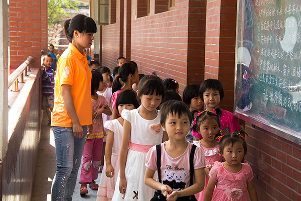 在学前班里,原本只能坐两个人的板凳由于学生数量的增多不得不坐上四个人。还有很多学生没有凳子,只能站着听课。据负责人陈风明介绍:“此次接受‘三下乡’支教学生的人数高达300人,创taptap举行此类活动的最高人数。”