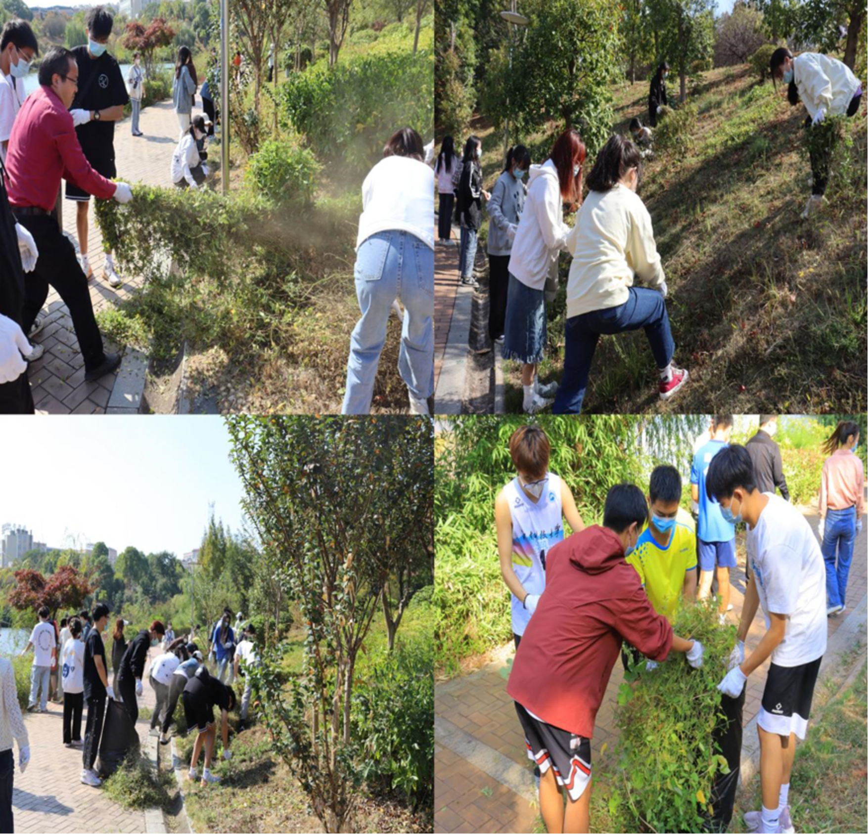 学院党委书记周光明、院长禹旭才、党委副书记刘辉亚与副院长余蓉晖带领十四个党支部书记和2022年下半年入党积极分子培训班的全体学员近400人,积极开展月湖环湖草坪15个区域的绿化带的清理活动,大家齐心协力清除杂草、捡拾垃圾,劳动场面如火如荼。
