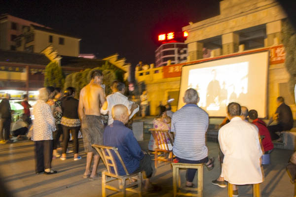 黑夜落幕,电影《建国大业》7:30准时开播。围观的村民越来越多,不少居住在附近的村民索性搬来了小椅子。由于害怕各种意外导致电影中断,几位志愿者一直寸步不移地守候在投影仪旁,赢得了村民们的一片赞许。