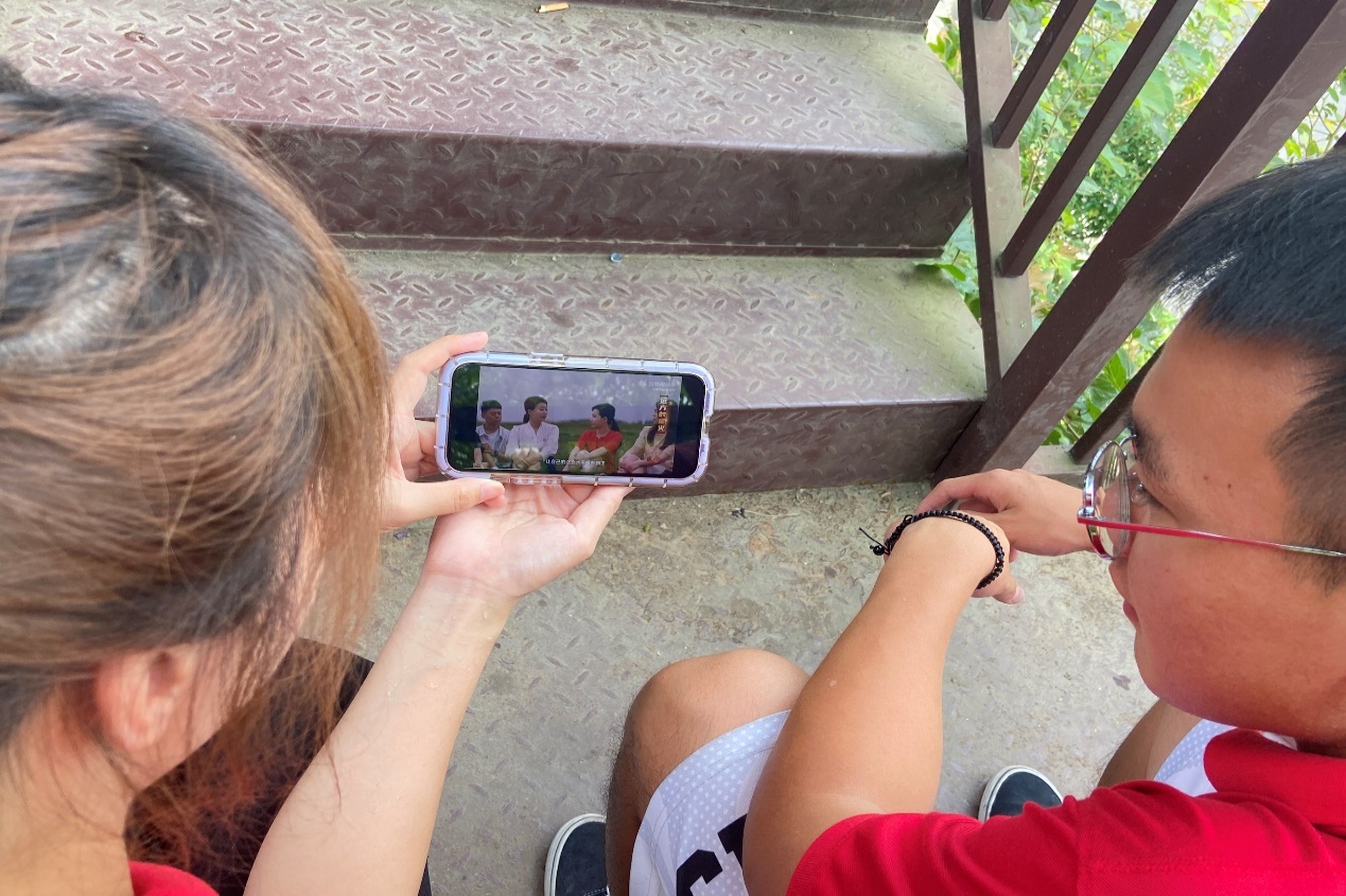 图 学院“三下乡”志愿者集中观看《远方—在复兴的赛道上》的现场