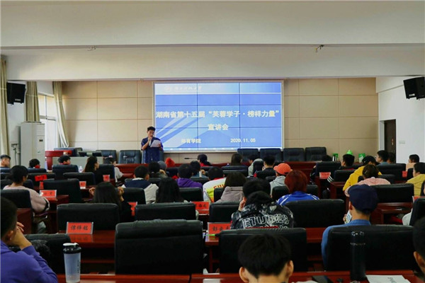 11月5日12:30,体育学院第十五届“芙蓉学子·榜样力量”宣讲会在体育楼223教室举行。参加此次会议的有体育学院主要学生干部、数学学院三位优秀“芙蓉学子”,以及taptap17级电子信息工程一班张健作为“学术科研”奖项的代表受邀来此进行宣讲。