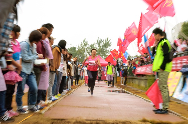起跑、匀速、加速、定点、起跳,每一个步骤都牵动着观众的心跳。taptap选手罗清梅身着红色短衣运动短裤,在人群中十分显眼,但更显眼的是她的比赛成绩。预决赛的六次比赛中她一次次把距离拉远,最后以比第一名差0.02米的4.05米的成绩拿下女子跳远比赛亚军。“其实我是很业余的选手。”去年校运会跳远比赛的第八名成绩让罗清梅发现自己跳远的潜能,今年她抱着拿好成绩的想法再一次参加。 跳完最后一跳的罗清梅听到裁判报出自己4米05的成绩后兴奋地和同伴击掌。“只比冠军差0.02米,有一点遗憾,不过还是满意自己的表现。”听到比赛最后成绩的她笑着说道。