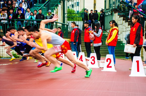 决赛开始,半蹲在起点的选手聚精会神,只等裁判发号施令。裁判一声令下,选手如离弦的箭一跃而起,顿时看台上摇旗呐喊声此起彼伏,一浪高过一浪。男子组中的首云鑫一刻也不松懈,最后关头他加速前进,超过前面众多选手,以11秒36斩获第二名。