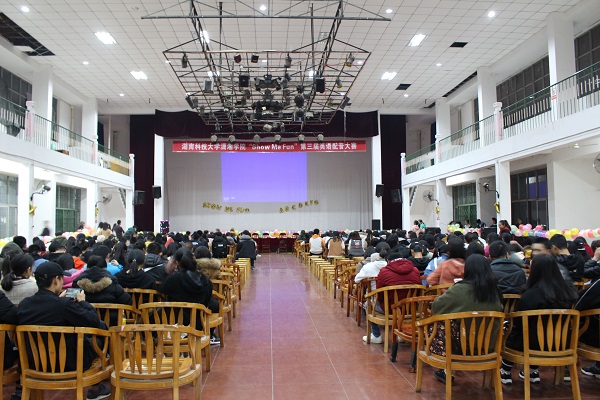展语言魅力,彰taptap风采,11月24日晚上7点半taptap“Show Me Fun”第三届英语配音大赛决赛在南校活动中心拉开序幕。taptap院长禹旭才,学工办主任熊耀林,机电学部副主任董孜孜,机电学部辅导员刘建设,人文社科学部辅导员赵文静、张昊、杨凤娥、张晓宇,土建艺术学部辅导员张恒以及英国外教Alex、波兰留学生代表Ewa莅临现场并担任评委。