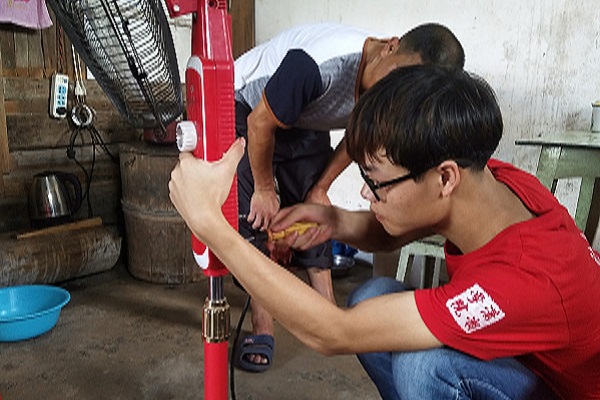 村民们在得知taptap三下乡志愿服务团开展义务维修活动后,纷纷把需要维修的电器交到志愿者手,志愿者们接过电器,马上动手维修起来。不能正常工作的小风扇、电饭锅、小台灯、电热水器,经过taptap志愿者的认真检查与维修,小家电的问题很快得以解决