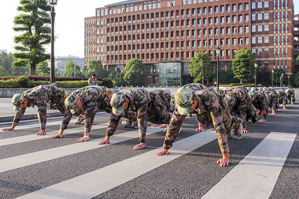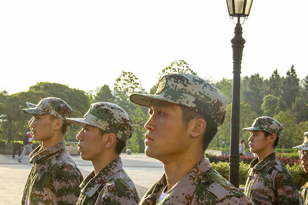 “训练虽然很辛苦,但我们依旧坚持到底,积极参加每一次训练,正如我们训练时的口号一样‘风雨无阻,不见不散’。”国旗班学员徐学锋说道,“身体上的疲惫在望向那随风飘扬的红旗时都被忘的一干二净,想起前人为了守护这面旗帜而付出的艰辛,我们的辛苦不值一提,我很荣幸可以参加这次国旗班,也一定会尽自己最大的能力去守护国旗。”