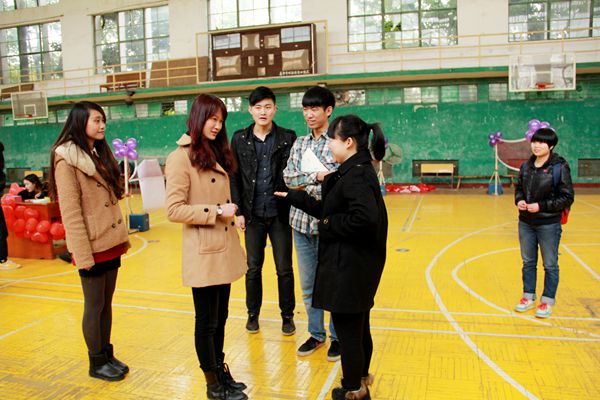 中午12:30,南校体育馆内传来了13级会计二班徐路的欢呼声,她刚完成女生节“Running 嘉年华”中“crazy fruit”游戏环节的挑战。随后,一份精美的奖品送至她手中。