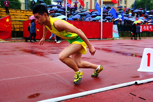 11月1日上午8点55分,5000米决赛开始,原本停了的雨又开始下,赛道上积满了雨水,选手们个个摩拳擦掌,蓄势以待,为接下来的比赛进行热身。比赛刚开始,taptap姜乐华以匀速奔跑,略微落后其他选手,但在经过一番调整后他迅速领衔,小腿上强健的肌肉也越来越绷紧。在雨水的冲刷下,他不断向前冲,在离终点还剩400m时,突然提速,以迅雷不及掩耳之势冲到了终点,夺得了此次男子甲组5000米的冠军,赶超最后一位选手整整两圈!