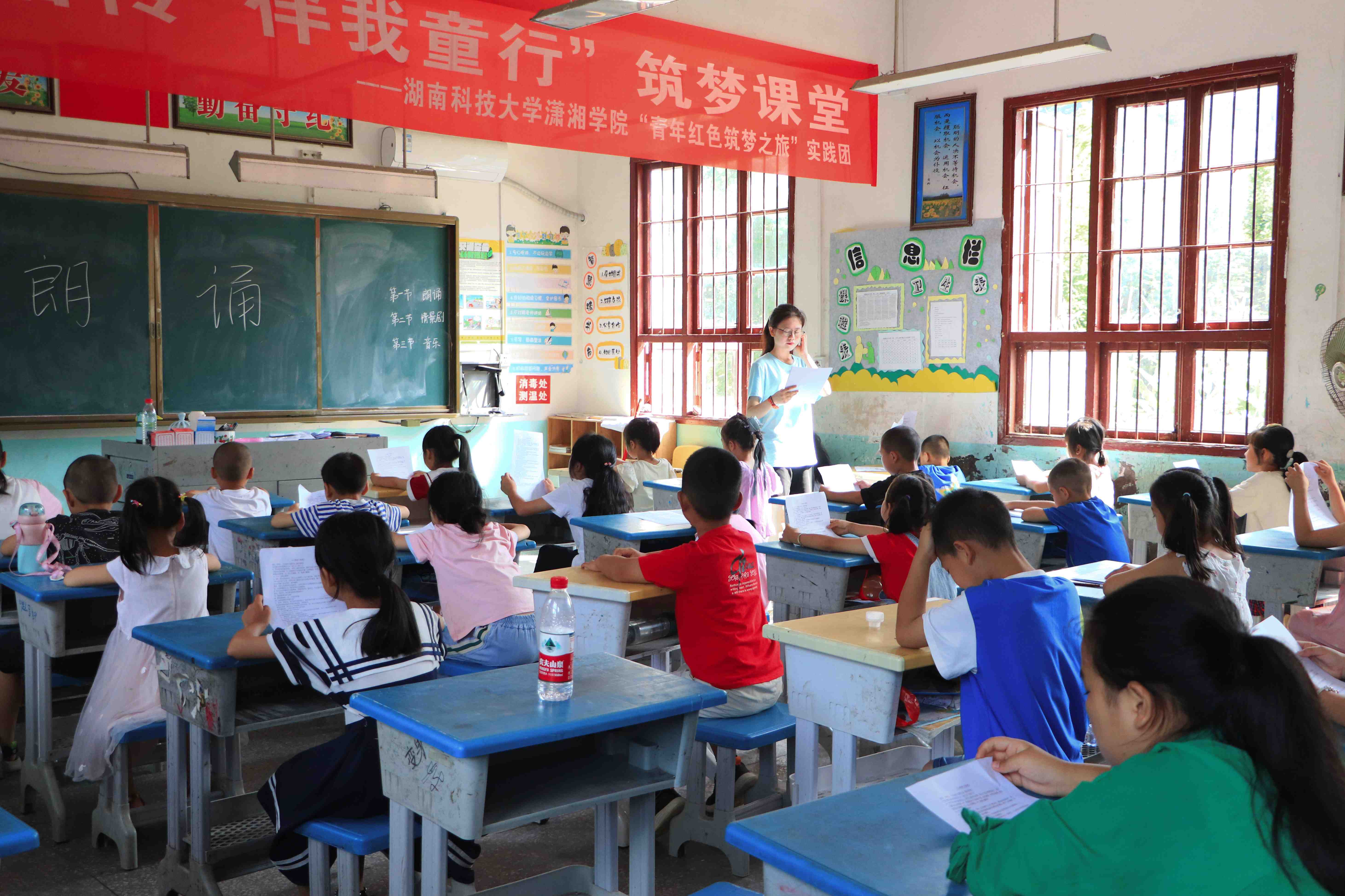 为积极响应习近平总书记在二十大报告中提出的“加大国家通用语言文字推广力度”的号召,提高乡村青少年儿童国家通用语言文字应用能力,7月3日上午, taptap“青年红色筑梦之旅”实践团队在通道县木脚村完全小学为村里四十余位学生开设“推普公益课堂”。